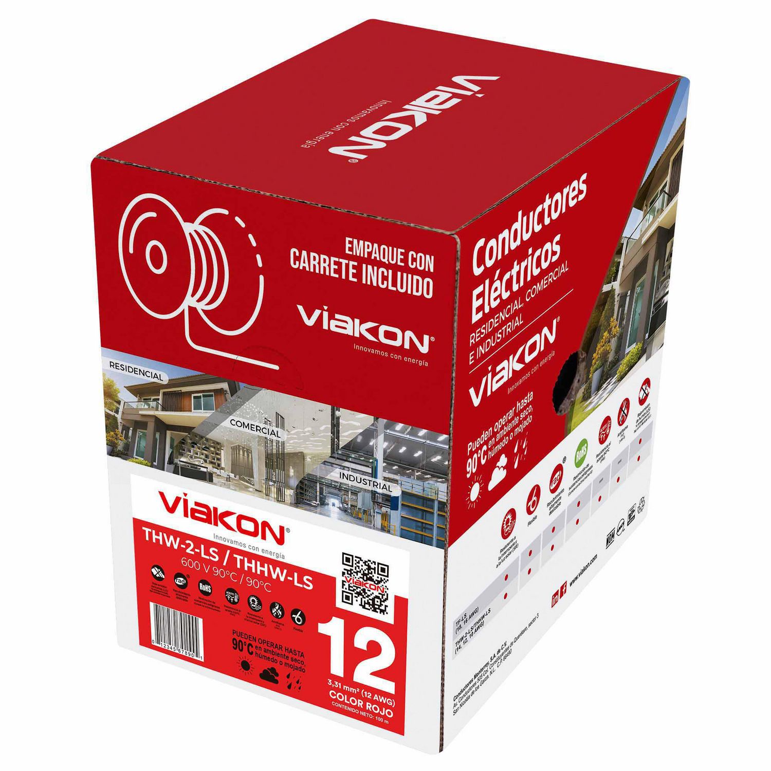 El Cable Viakon THHW-LS #12 Rojo de 100 metros es la solución ideal para tus proyectos eléctricos. Con un conductor de cobre suave y un aislamiento de PVC rojo, este cable te ofrece la seguridad y resistencia que necesitas. Su certificación ANCE garantiza su calidad y su uso general para sistemas de distribución a baja tensión e iluminación te permite utilizarlo en una amplia variedad de aplicaciones. ¡No te preocupes por la intemperie, este cable es resistente y altamente deslizable!